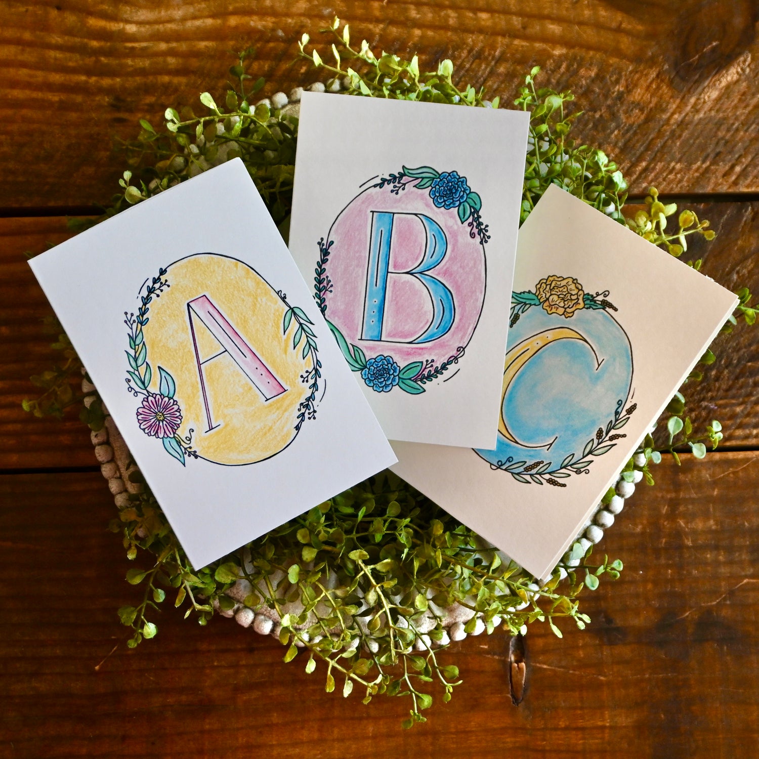 Our Pastel Monogram Collection of note cards and art prints feature soft colors and joyful designs, ideal for sending heartfelt messages or displaying in your home.